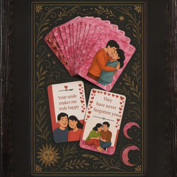 Unlock the unspoken with this beautifully illustrated tarot-inspired deck that reveals your partner’s current feelings for you. Whether you’re in a relationship, in separation, or just sensing mixed signals, these cards offer heartfelt, intuitive insights into their emotional state.